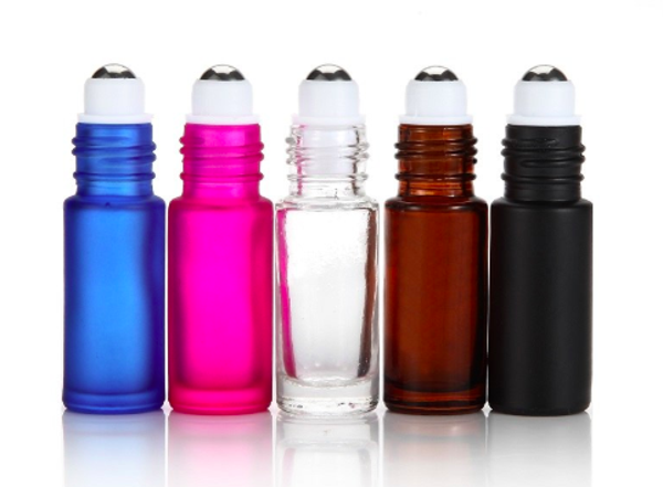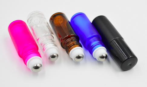 Dikwandige, glazen 5 ml roll-on flesjes.